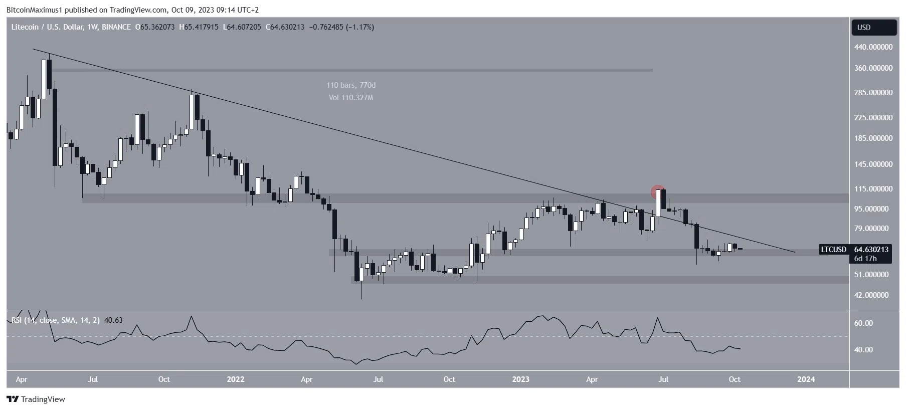 В августе Litecoin провалился ниже нее и в настоящее время торгуется чуть выше горизонтальной области поддержки $60.
