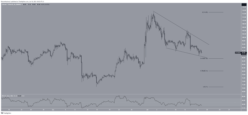Несмотря на такой бычий краткосрочный прогноз, медвежий пробой из клина, скорее всего, станет катализатором падения цены LTC до $80.