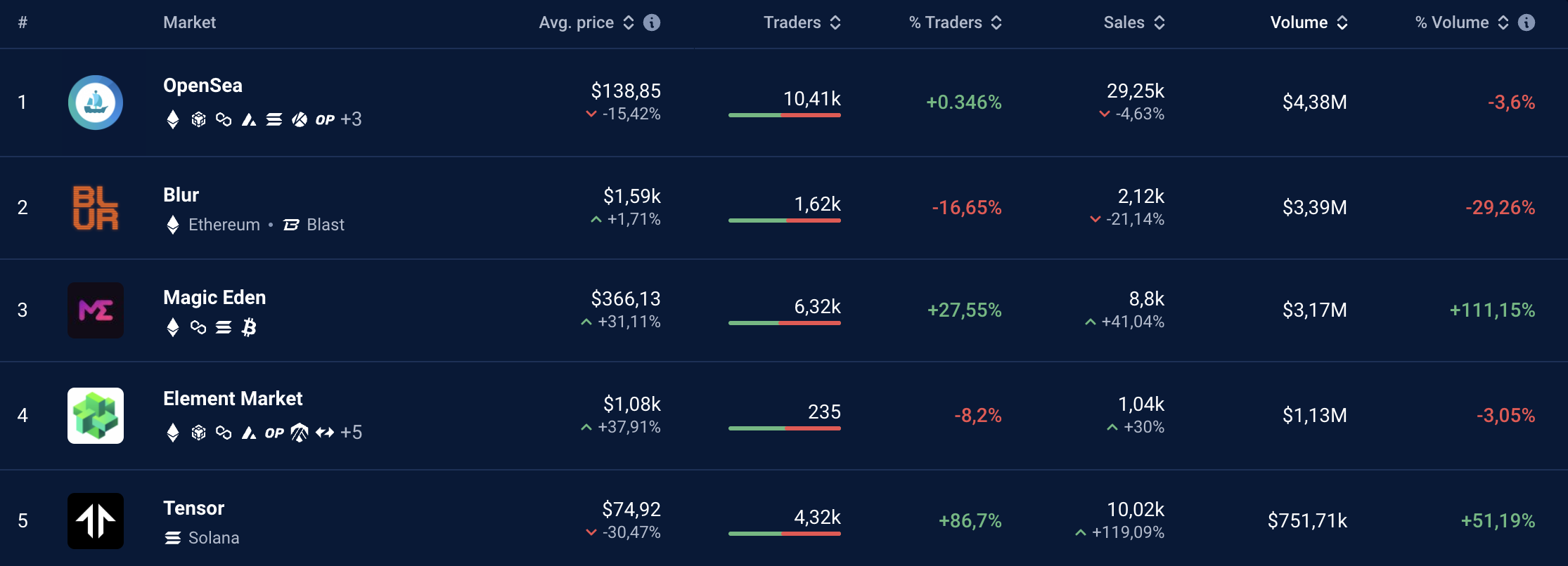 В марте этого года на фоне огромной популярности биткоин-ETF объем торгов Magic Eden подскакивал до $756 млн. Тогда платформа обогнала Blur — площадку, прочно удерживающую второе место в лидерборде.