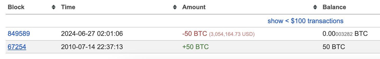 Заинтересовавший криптосообщество майнер заработал свои 50 биткоинов еще 14 июля 2010. Он добыл монеты на блоке #67 254. Тогда коины практически ничего не стоили, а сегодня оцениваются в $3 млн.