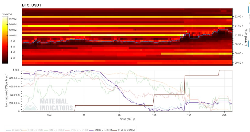 Кроме того, наблюдатель рынка под ником «Maartunn» поделился в «Твиттере» графиком, который указывает на то, что самые крупные биткоин-киты сейчас совершают покупки. Фиолетовая линия на графике представляет кошельки с балансом BTC на сумму от $100 000 до $1 млн. Коричневая линия демонстрирует накопление монет кошельками с балансом от $1 млн до $10 млн.
