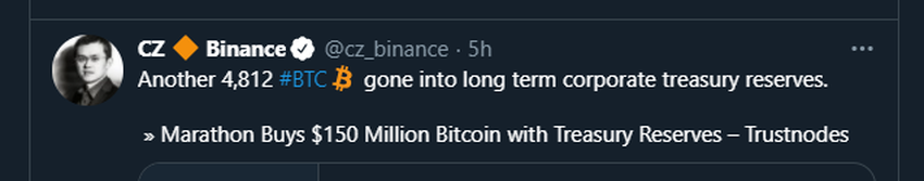 Впервые в истории, компания, занятая добычей биткоинов, купила эти монеты на открытом рынке, чтобы пополнить свои резервы. Marathon покупает на спаде, а это значит, что биткоин, скорее всего, снова выйдет в рост в ближайшее время.