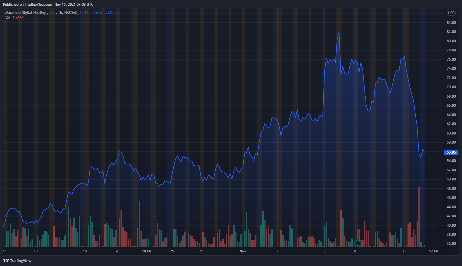 На момент написания материала MARA торгуется у отметки в $55,4. Рыночная капитализация компании обрушилась до $5,5 млрд. По состоянию на 31 октября, компания Marathon являлась крупнейшим публичным держателем биткоина среди майнинг-компаний. Согласно данным Compass Mining, на балансе у Marathon было 7453 BTC. В тройку компаний также вошли Hut 8 (5053 BTC) и Riot (3995 BTC).