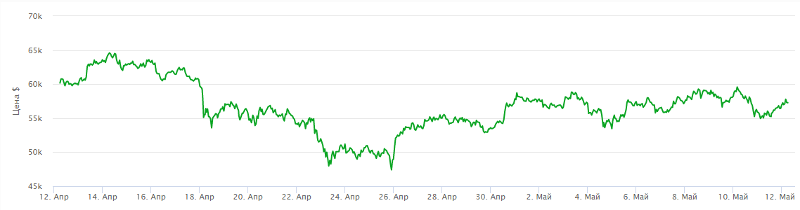 Пока эксперты обсуждают козлов Цукерберга, стоимость биткоина остается стабильной и на момент написания материала составляет $57152.