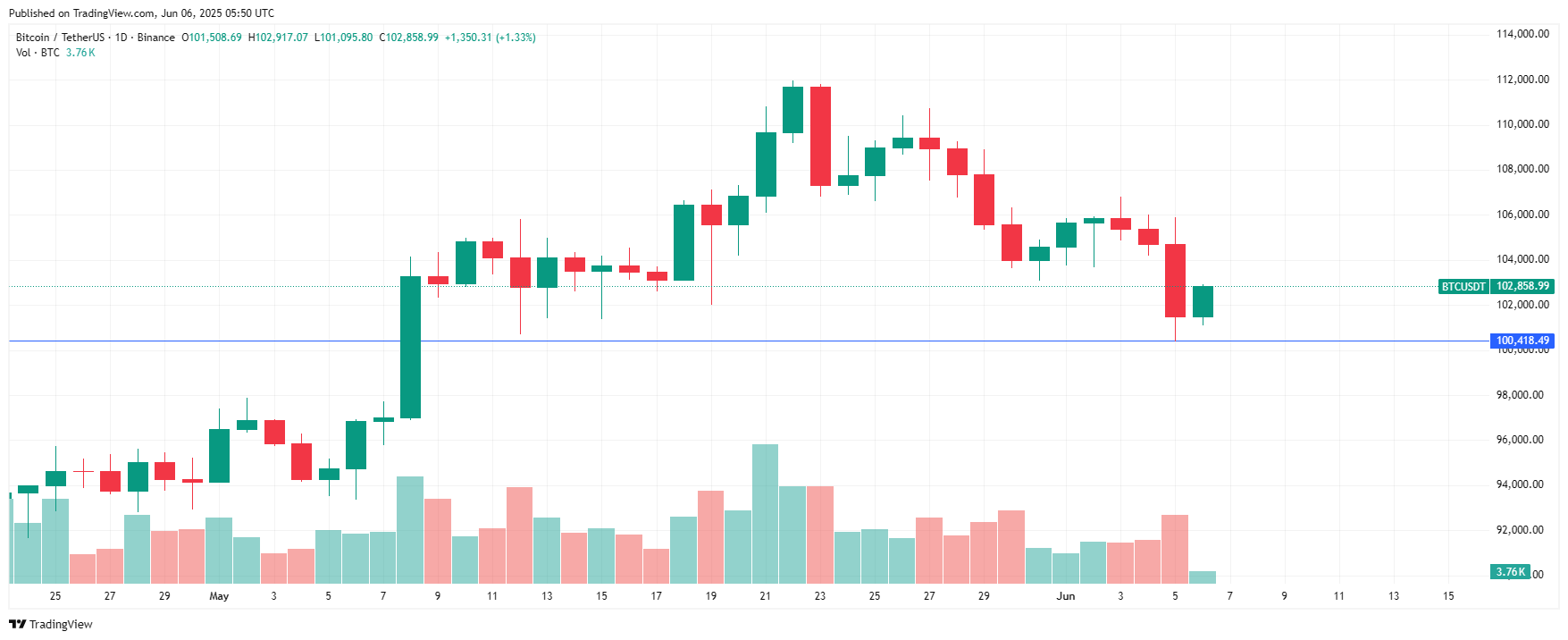 На момент написания обзора, биткоин восстановился до $102 858. Напомним, ранее редакция BeInCrypto опубликовала анализ рынка, результаты которого показывают, что буллран BTC может быть еще далек от завершения.