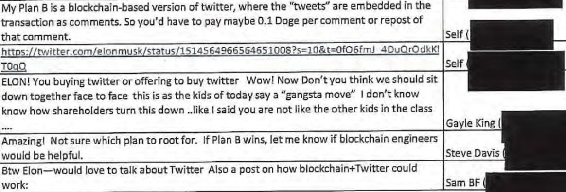 Еще один криптоэнтузиаст @CroissantEth провел целое расследование, собрав различные комментарии и возможные намерения Маска в отношении платформы. Судя по всему, бизнесмен рассматривал в качестве варианта создание социальной медийной системы на базе блокчейна, которая поддерживает как проведение платежей, так и отправку текстовых сообщений.