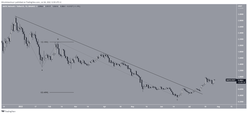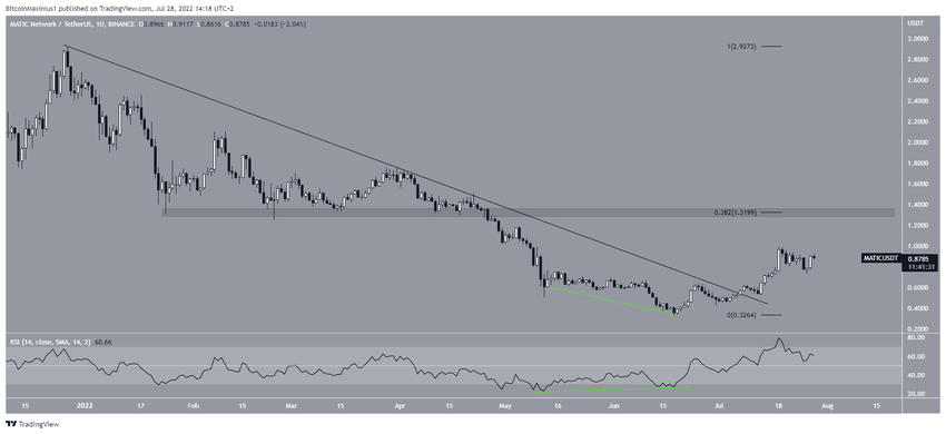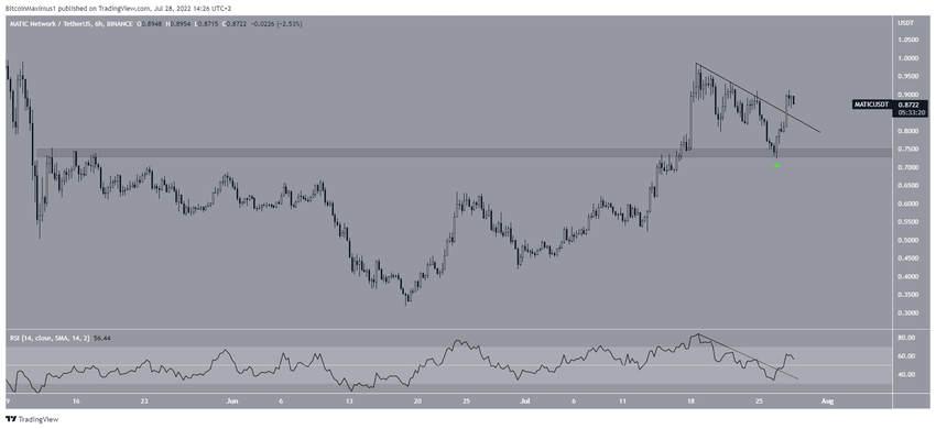 Коин Polygon (MATIC) отскочил от уровня важной горизонтальной поддержки $0.74, а впоследствии совершил бычий прорыв линии краткосрочного нисходящего сопротивления.
