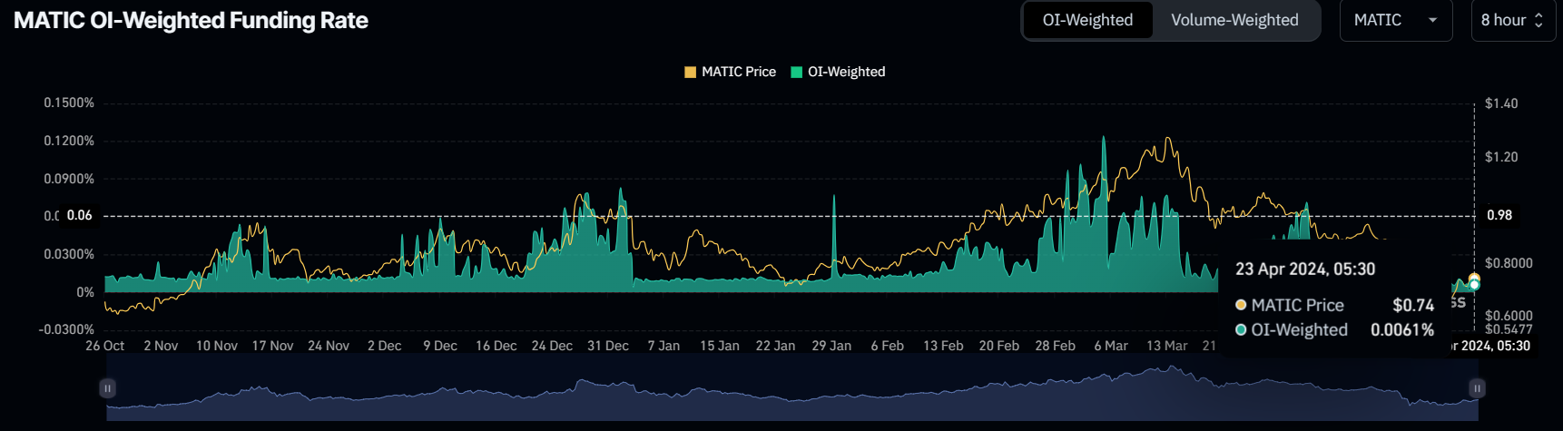 Дополнительную поддержку восстановлению оказывают трейдеры на рынке фьючерсов. Они делают «бычьи» ставки на цены MATIC, демонстрируя таким образом оптимизм и уверенность. Об этом свидетельствует ставка фондирования, которая была отрицательной в течение последних нескольких дней.