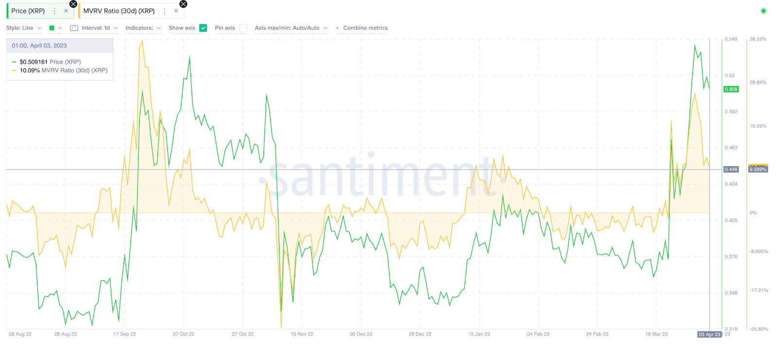 Согласно показаниям индикатора MVRV, большинство купивших XRP за последние 30 дней инвесторов получат 10% прибыли, если избавятся от токенов по текущей цене. Массовые продажи могут привести к снижению до отметки $0,49 и дальнейшему падению к $0,45.