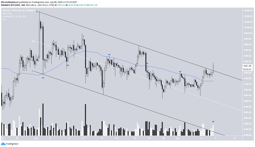 Сейчас BTC тестирует нисходящий канал от 1 июня. Ввиду повышенных торговых объемов бычий прорыв на первый взгляд внушает доверие.