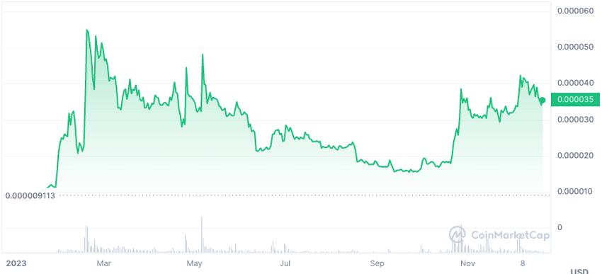Ранее в этом году они выпустили первую часть игры в метавселенной для дальнейшего развития экосистемы. После этого FLOKI продемонстрировал впечатляющий рост: за последний год он вырос на 294,71%, в результате чего его текущая цена достигла $0,00003531, а рыночная капитализация — $335,78 млн.
