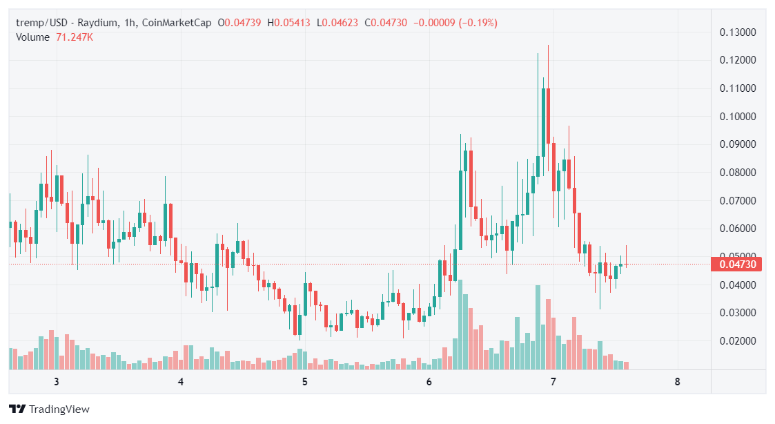 Мемкоин TREMP, созданный в честь кандидата в президенты США Дональда Трампа, появился на Solana еще в конце февраля. Он не показал такой же впечатляющей динамики, как Joe Boden. Однако за 6 марта цена «мемной» монеты выросла более чем на 113%, согласно CoinMarketCap.
