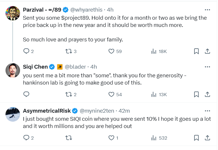 Участник криптосообщества по имени Сики Чен поделился со своими подписчиками в X историей Рождественского чуда. Неизвестный отправил на его кошелек мемкоины стоимостью $400 000, которые вскоре превратились в миллионы долларов. Ранее Чен опубликовал реквизиты для донатов в пользу доктора, который помогает его дочери с лечением. Мужчина не ожидал, что ему удастся привлечь такую сумму