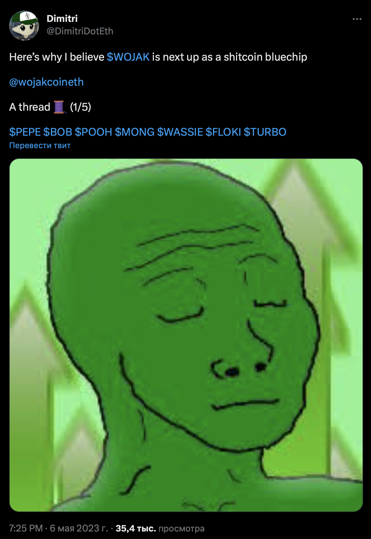 SponsoredЗа последние 7 дней цена мемкоина на базе Ethereum выросла более чем на 1000% и привлекла массу внимания со стороны трейдеров, которые спекулируют на котировках волатильного актива. WOJAK доступен для торговали на BitGet, Huobi, BTCEX, BingX, LBank, SuperEx и CoinEx.