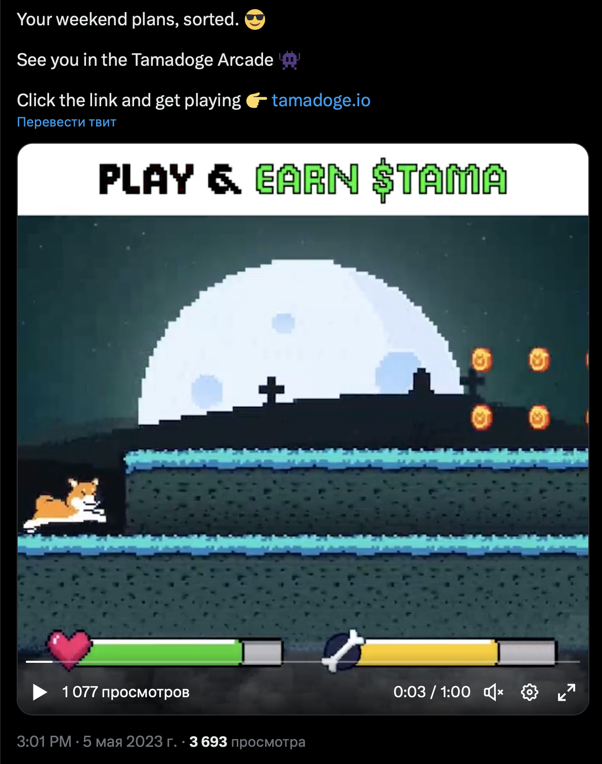 P2E-проект Tamadoge вдохновлен популярной игрушкой «Тамагочи», созданной Аки Маита и Акихиро Йокои из Bandai и WiZ. Мемкоин TAMA позволяет создавать и разводить NFT-питомцев, продавать их на маркетплейсе и сражаться с другими пользователями.