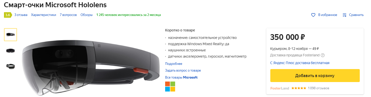 При этом для пользования новым продуктом понадобятся очки виртуальной реальности вроде Microsoft Hololens. Стартовая цена такого устройства, согласно данным Яндекс.Маркета, составляет ₽350 000. Версия последнего поколения Microsoft Hololens стоит еще дороже — ₽525 000.