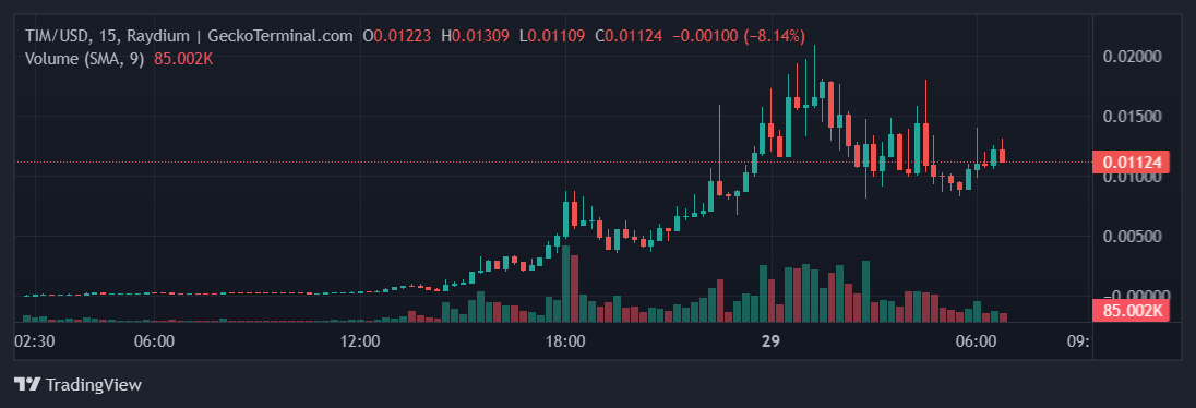- На все SOL трейдер купил 526,6 млн токенов TIM, которые составили 52,66% от общего объема эмиссии криптовалюты. Операцию по покупке монет он осуществил за 3 минуты до запуска торгов монетой.