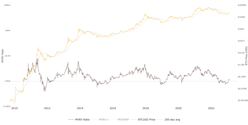 Аналитик @CryptoNoob_1 недавно опубликовал в «Твиттере» график MVRV, отметив падение ниже 200-дневной средней. Он добавил, что в прошлом такие прорывы приводили к резкому росту цены биткоина.