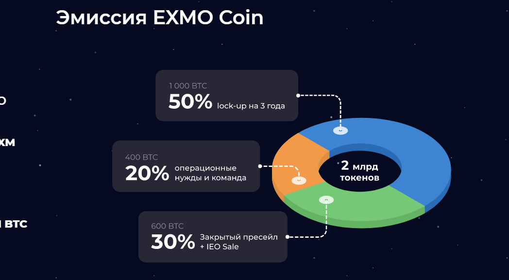 Еще один нюанс заключается в централизации токена. На сайте токена говорится, что почти 50% токенов распределены по закрытому типу. Так, 20% от 2 млрд EXM выделено на «операционные нужды и команду». Еще 30% было распродано в рамках закрытого пресейла и биржевой распродажи.