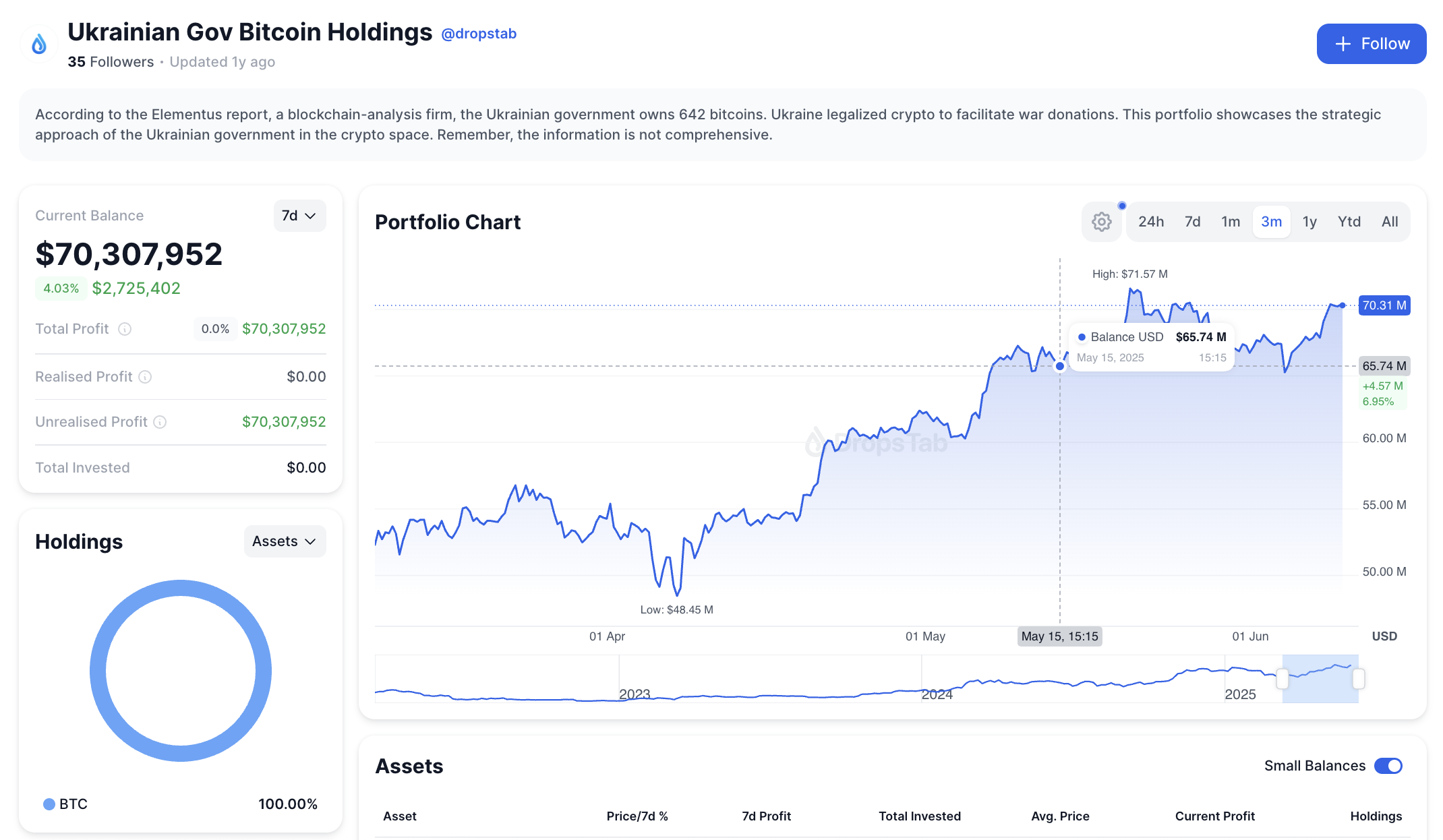 После начала военного конфликта с Россией украинские власти чаще стали обсуждать вопрос регулирования крипторынка. По данным DropsTab, правительство Украины владеет биткоинами на общую сумму свыше $70 млн. Для сравнения, на счетах властей США хранится криптовалюта на $20 млрд, а Китая — почти $19 млрд.