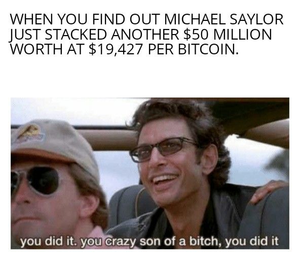 «Твое лицо, когда узнал, что Майкл Сейлор купил биткоины по курсу $19,427 за BTC еще на $50 млн.