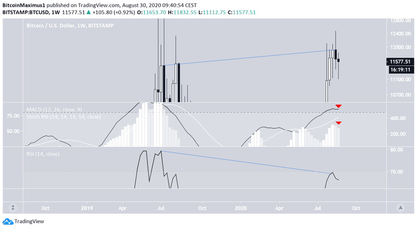 Недельное закрытие будет очень важным для дальнейшей динамики главной цифровой валюты, и если цена сможет удержаться над уровнем $11 540, это станет сигналом начала нового восходящего движения.