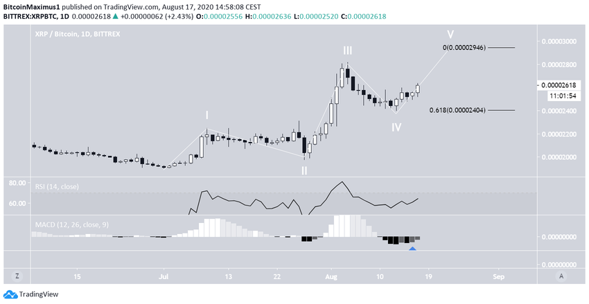 Похоже, XRP только что завершил четвертую волну структуры Эллиота и начал пятую волну, минимальная цель которой проходит на отметке 2944, а наиболее вероятная – в районе 3261 сатоши.