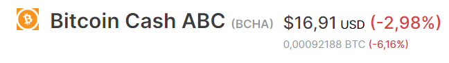 На момент написания материала токен BCHABC торгуется на уровне $16,91 (-2,98%).