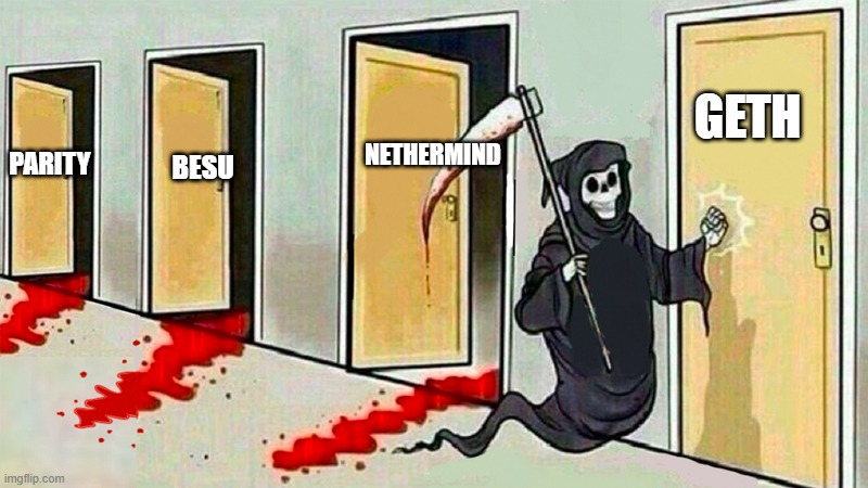 «У Besu случилась ошибка в начале месяца. Это не было большой проблемой, потому что он составляет ~4% сети. У Nethermind случилась ошибка сегодня. Ничего страшного, потому что он составляет ~10% сети. Ошибки могут случиться в любом клиенте. Geth может быть следующим. Но тогда это станет большой проблемой».