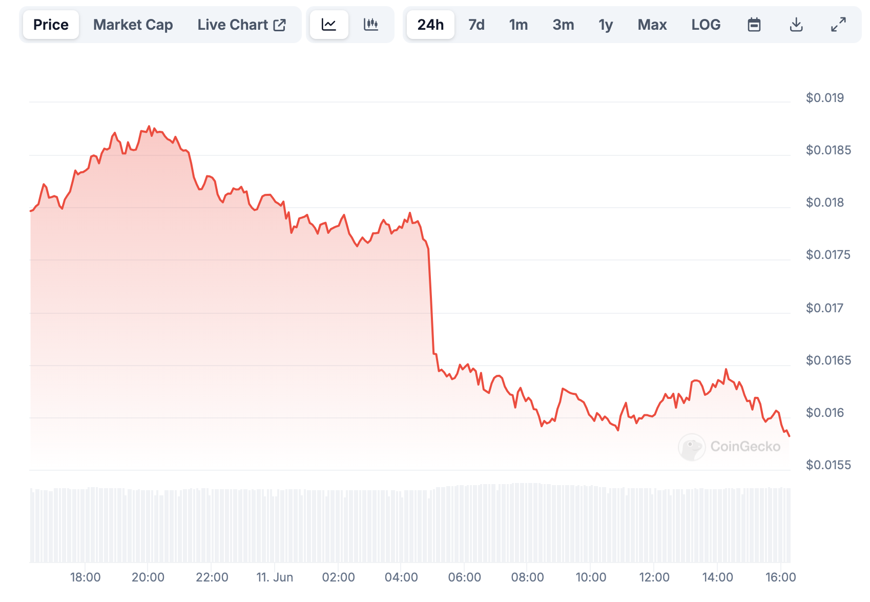 По данным CoinGecko, к моменту написания материала актив откатился на 68-ю строчку с рыночной стоимостью в $1,6 млрд. Сейчас Notcoin торгуется по $0,01591, просев за последние сутки на 11,8%. Тем не менее за прошедшие две недели цена NOT в совокупности выросла более чем на 64%.