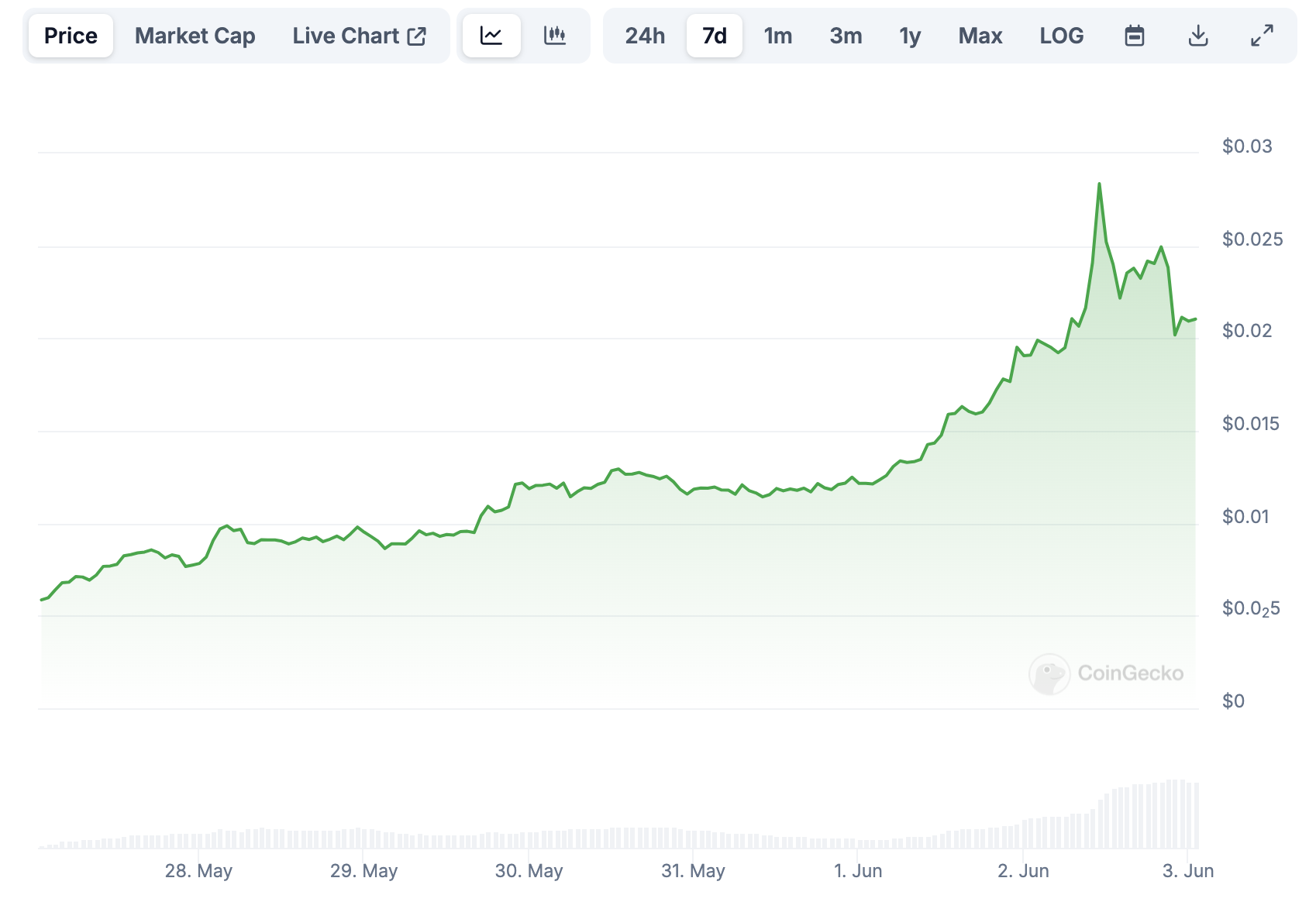 На момент написания материала криптовалюта Notcoin торгуется на отметке в $0,02115, подорожав за последние сутки на 11,2%. Совокупный прирост за неделю составил 280%, а за две — 297%.