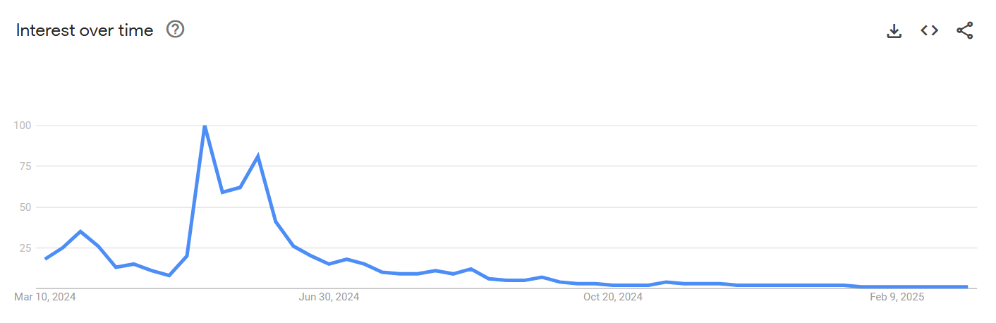 Однако к 2025 году интерес к Notcoin упал до нуля, о чем свидетельствуют данные Google Trends.