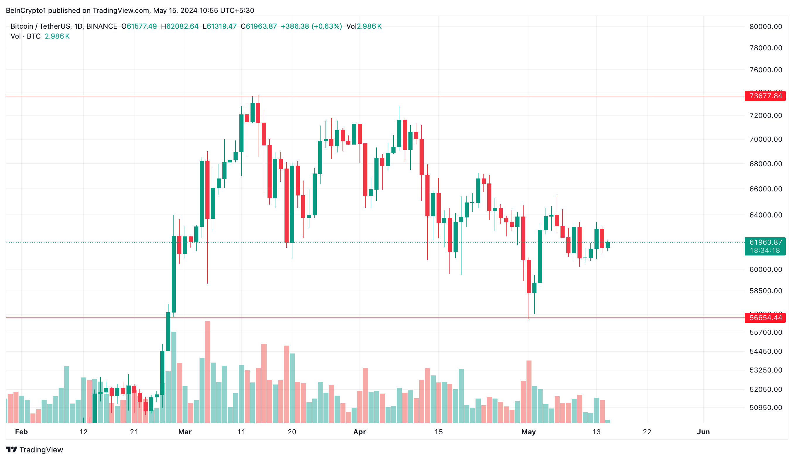 Однако за упомянутыми событиями последовал период стагнации. Главная причина — криптосообщество начало сомневаться в том, что Федеральная резервная система (ФРС) снизит ключевую ставку. С конца февраля стоимость биткоина колебалась между $56 500 и $73 700.