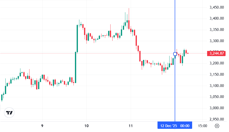 Вторая по капитализации криптовалюта Ethereum также начала день с бокового движения. По состоянию на момент написания обзора, монета торгуется по $3 244 (1 токен в рублях — ₽257 069).