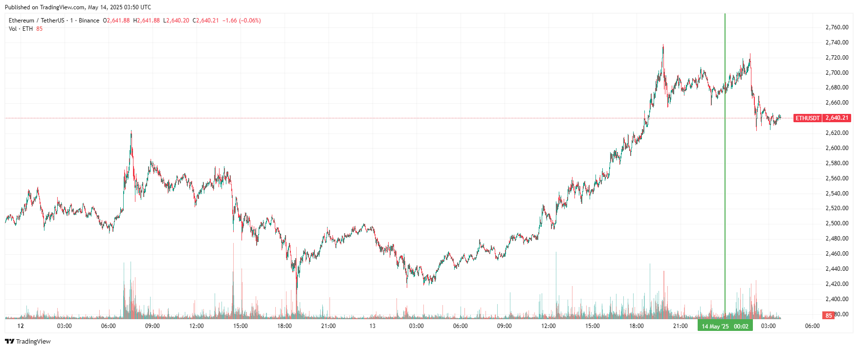 Вторая по капитализации криптовалюта Ethereum также начала день со снижения. На момент написания обзора, монета торгуется по $2 640 (1 токен в рублях — RUB 211 110).