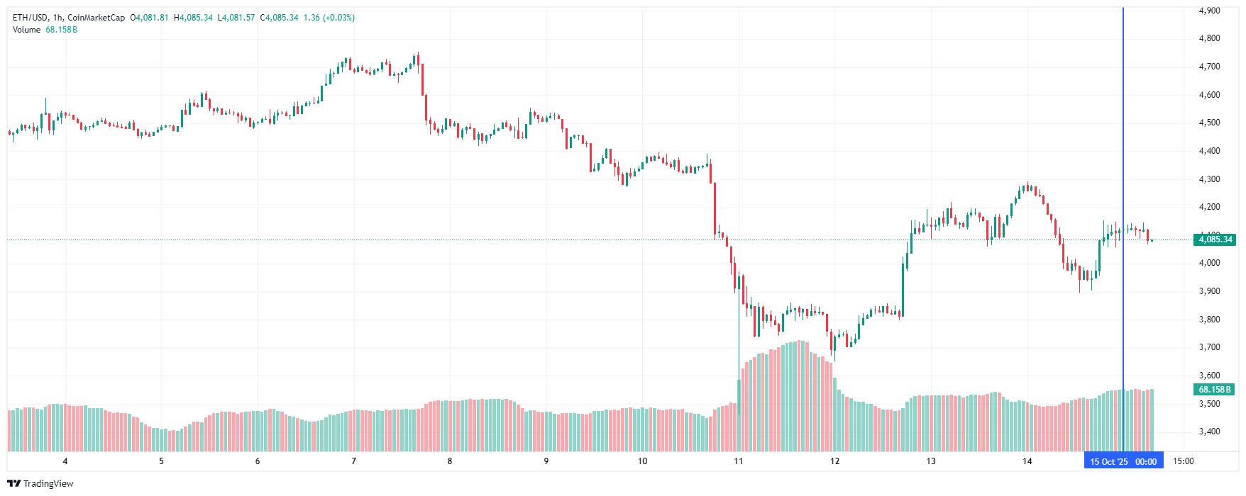 Вторая по капитализации криптовалюта Ethereum также начала день с падения. По состоянию на момент написания обзора, монета торгуется по $4 085 (1 токен в рублях — ₽325 504).