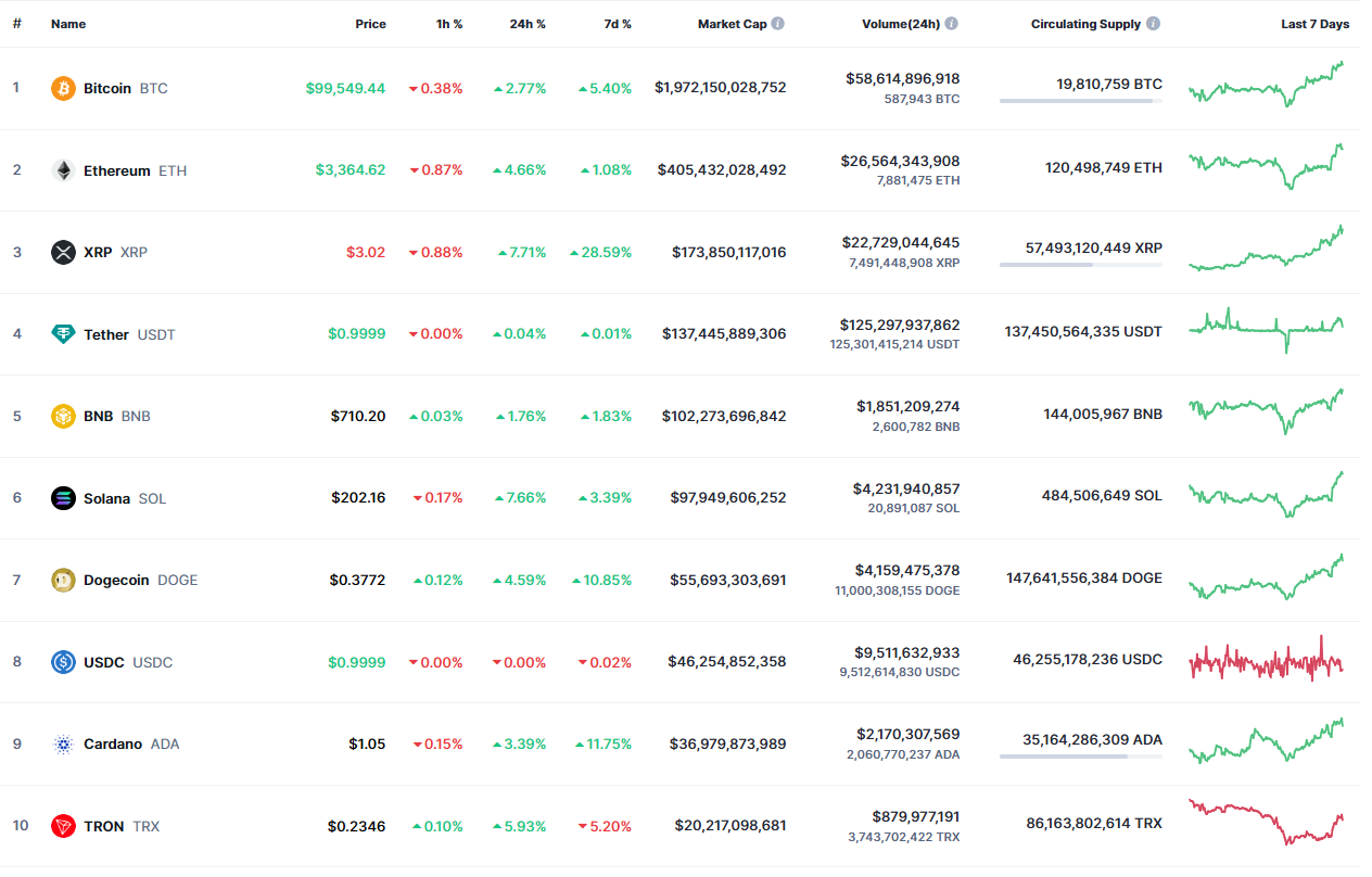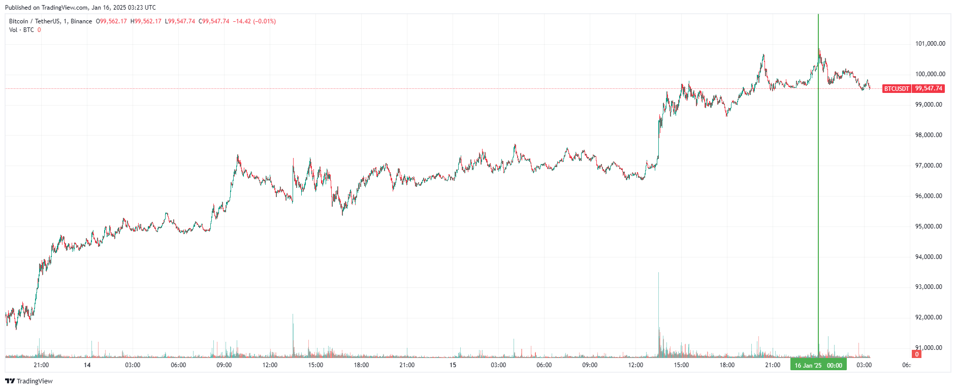 Биткоин (BTC), по данным ресурса TradingView, начал четверг с небольшого снижения. По состоянию на 06:24 (МСК), криптовалюта торгуется по $99 547 (1 токен в рублях — ₽10 198 597). Минимум биткоина за 24 часа — $96 505, максимум — $100 781.
