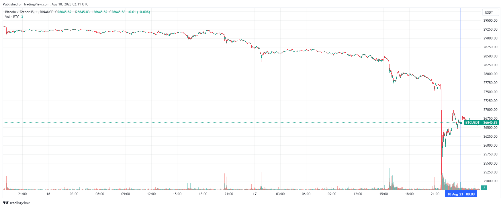 Биткоин (BTC), по данным ресурса CoinMarketCap, начал пятницу с бокового движения, которому предшествовал спуск к $25 409. Максимум стоимости криптовалюты за 24 часа — $28 665. По состоянию на 05:13 (МСК), биткоин торгуется по $26 645 (1 токен в рублях — ₽2,520,606).