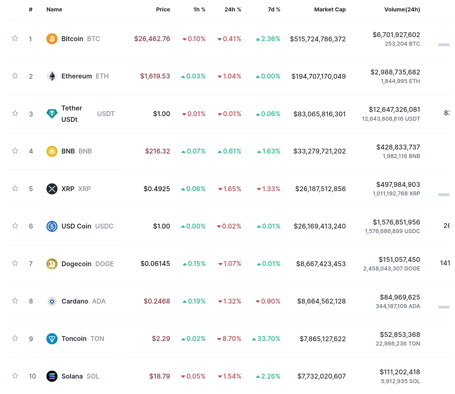 Биткоин (BTC), по данным ресурса CoinMarketCap, начал день с небольшого снижения. По состоянию на момент написания обзора, монета торгуется по $26 476 (1 токен в рублях – ₽2,561,913.60).