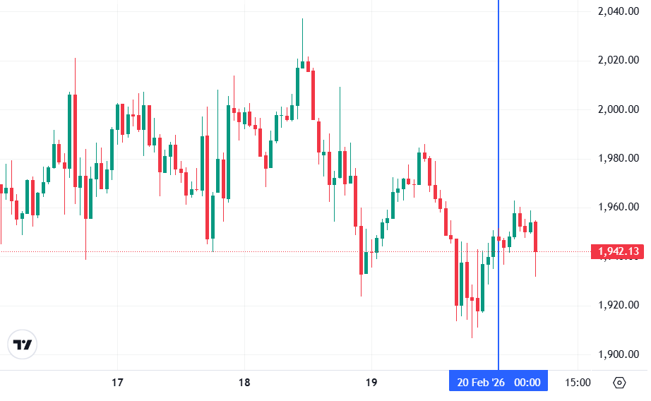 Вторая по капитализации криптовалюта Ethereum начала день с бокового движения. По состоянию на момент написания обзора, монета торгуется по $1 942 (1 токен в рублях — ₽148 911).