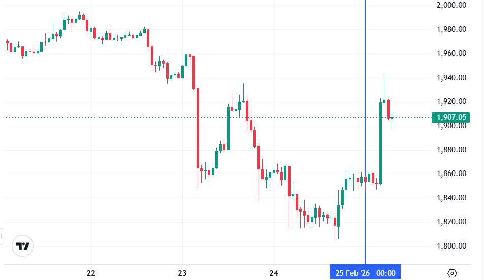 Вторая по капитализации криптовалюта Ethereum также начала день с роста. По состоянию на момент написания обзора, монета торгуется по $1 907 (1 токен в рублях — ₽145 911).