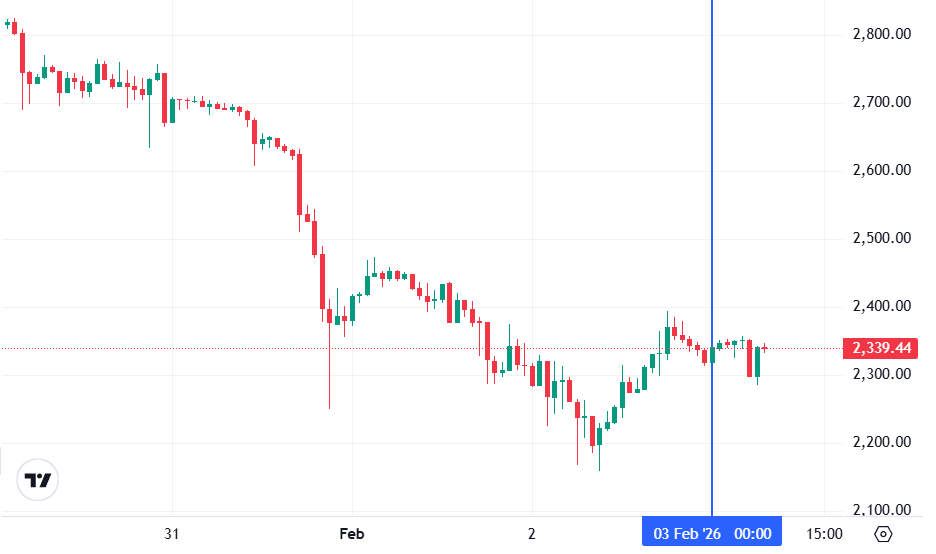 Вторая по капитализации криптовалюта Ethereum также начала день с бокового движения. По состоянию на момент написания обзора, монета торгуется по $2 339 (1 токен в рублях — ₽179 347).