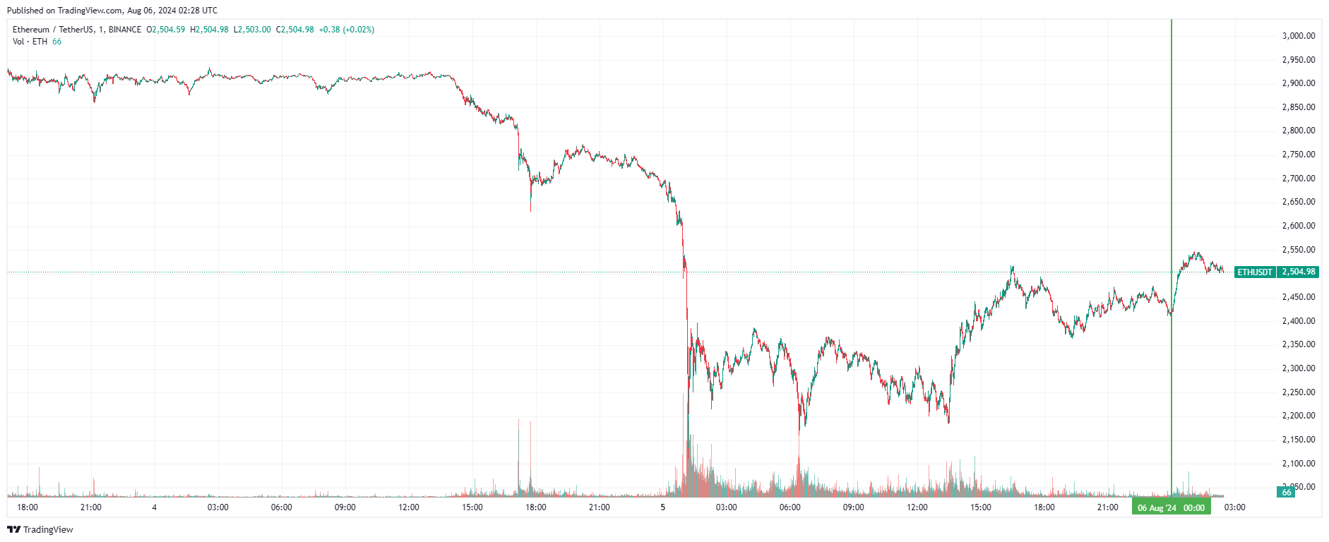 Вторая по капитализации криптовалюта Ethereum также начала день с восстановления. По состоянию на момент написания обзора, монета торгуется по $2504 (1 токен в рублях — ₽215 168).