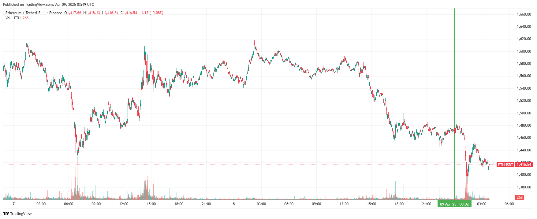 Вторая по капитализации криптовалюта Ethereum также начала день с падения. По состоянию на момент написания обзора, монета торгуется по $1 416 (1 токен в рублях — RUB 121 961).