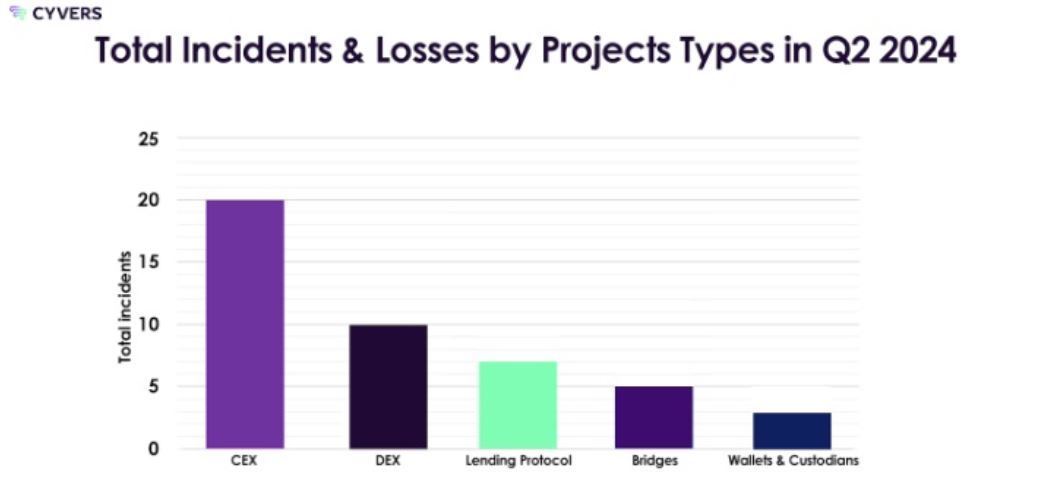 Во втором квартале 2024 года объем потерь вырос на 100% к году. Аналитики связывают негативную динамику с резким ростом взломов централизованных криптобирж.