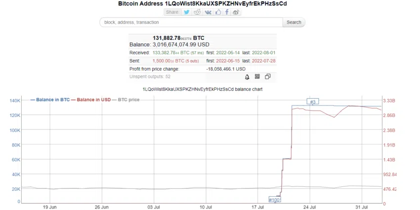 Всего на кошельке кита находятся 132 878 BTC на сумму $2,909 млрд.
