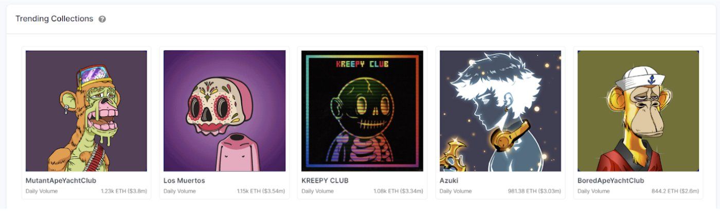 Также аналитики IntoTheBlock подсчитали, что по состоянию на 10 апреля на рынке было более 3,47 млн кошельков, держащих как минимум 1 NFT. Кроме того, специалисты заметили новую тенденцию NFT-коллекций, где, в основном, токены выполнены в форме аватаров, а не пейзажей или других форм изобразительного искусства.
