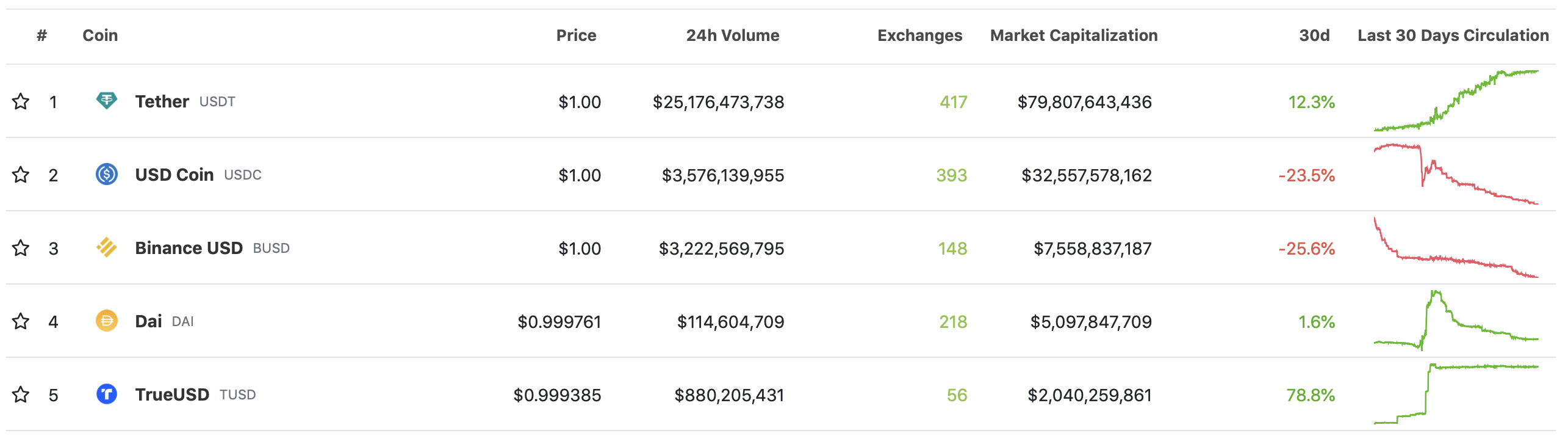 Согласно данным CoinGecko, в четверг и пятницу суточный объем торгов стейблкоином True USD (TUSD) превысил отметку в $1 млрд. Для сравнения, в начале марта он составлял менее $100 млн. Впечатляющий рост стал результатом поддержки токена криптобиржей Binance, которая ввела нулевые комиссии на покупку и продажу биткоина (BTC) за TUSD.