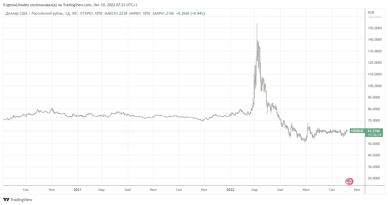 Многие участники рынка прогнозировали ввод санкций против НКЦ в восьмом пакете санкций, одобрение которого пришлось на 6 октября 2022 года. В этих условиях многие начали избавляться от валюты, что позволило рублю в моменте вновь опуститься ниже ₽60 за доллар.