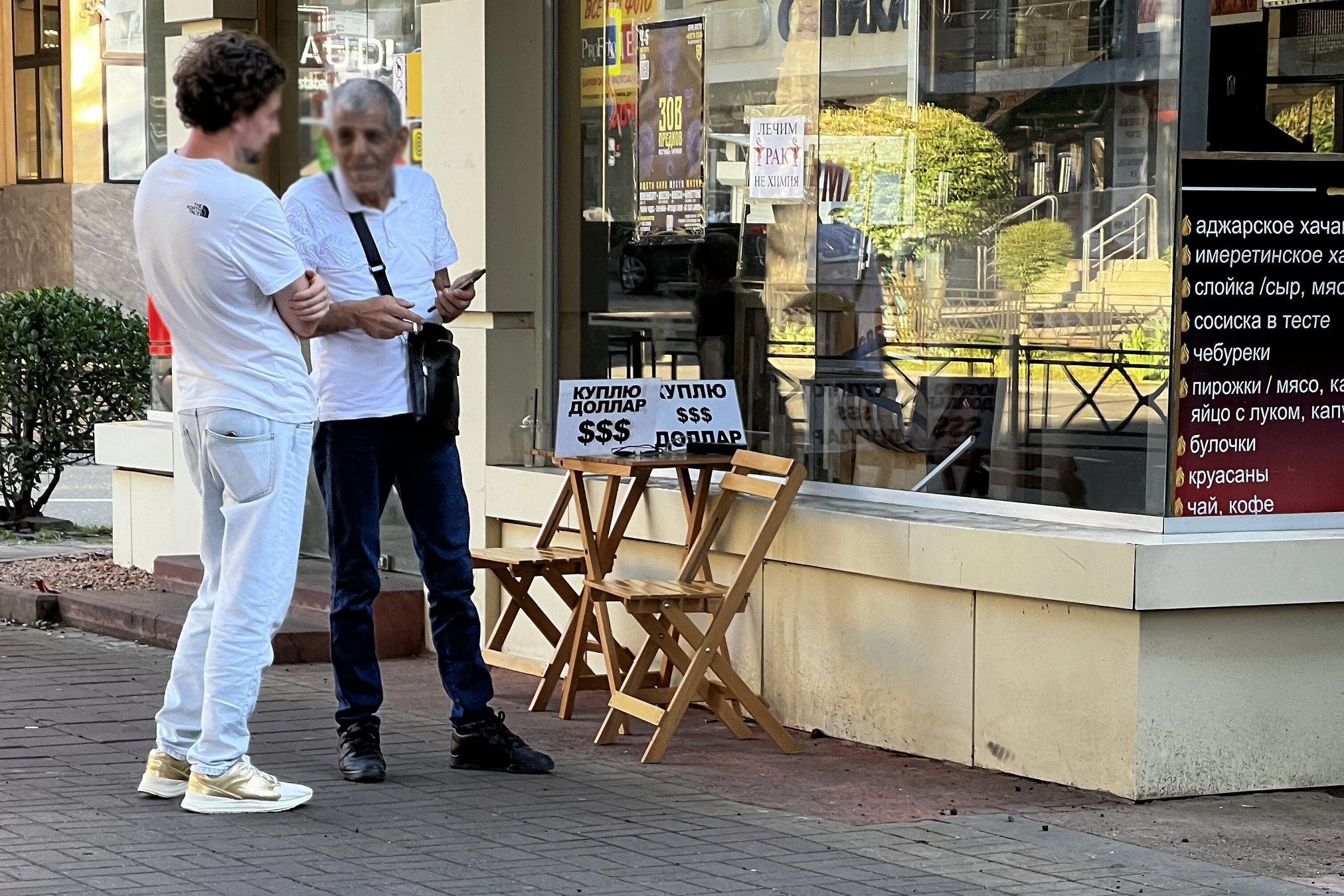 Журналистам редакции BeInCrypto удалось поговорить с представителем уличного обменника в Сочи, на который мы наткнулись случайно. «Менялы» организовали пункт близ центрального рынка – на оживленной улице. Основным видом их деятельности оказалась скупка наличных долларов, а также USDT.